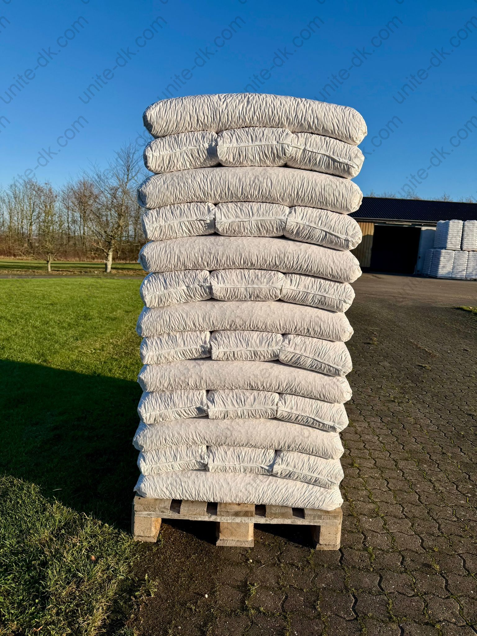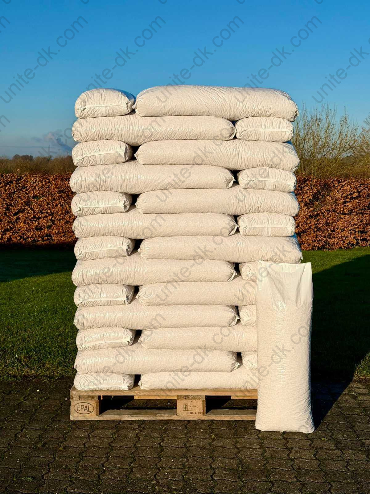- Vægt pr. palle: 832 kg (52 poser af 16 kg)