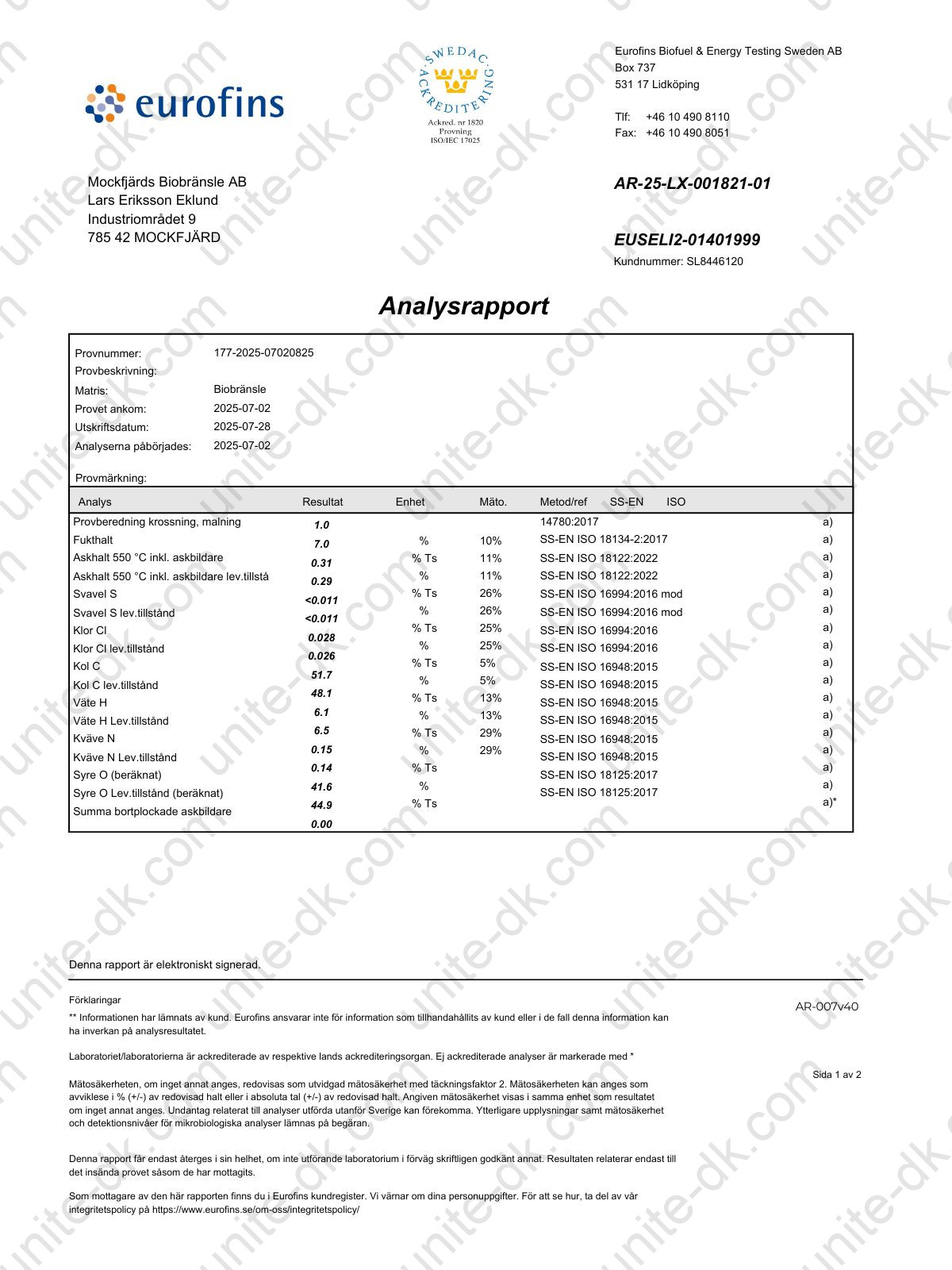 - Askeindhold: ≤ 0,3%